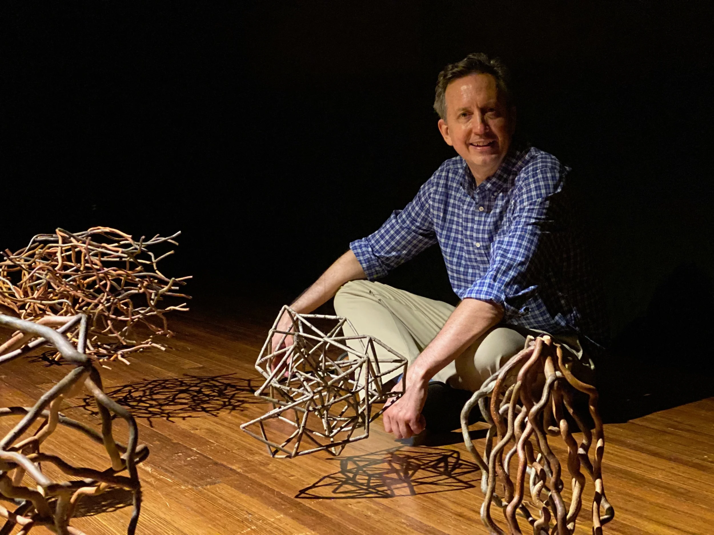 In making sculpture with tree branches, I am able to study the branches closely and gain a deeper appreciation of nature. Each type of twig has its own form, texture, color, hardness, and internal structure. I love to explore how the branches divide and send forth new growth; I find these areas to be beautiful and suggestive of hope for the future. I’m also fascinated that branching occurs in many other places in nature, such as in our body’s circulatory and nervous systems, in rivers and streams, in antlers, and in lightning, for example.